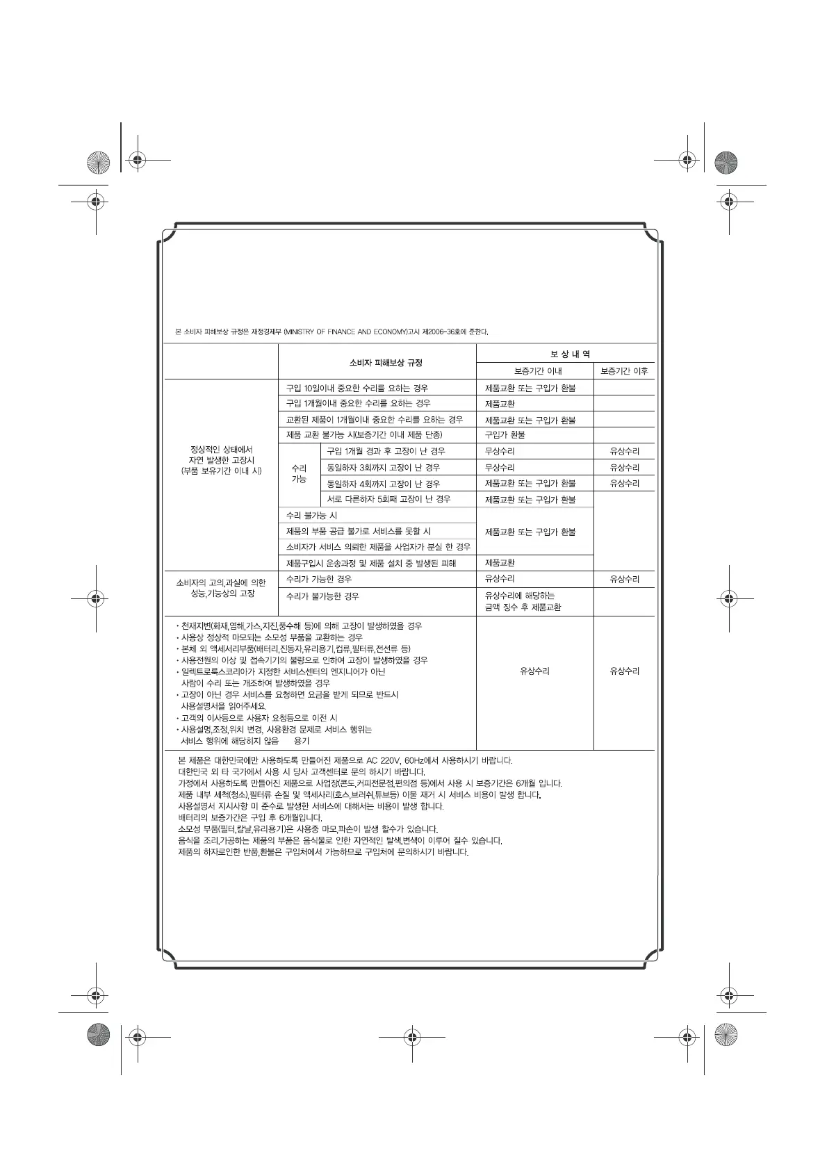Electrolux EEA 250 - Consumer Damage Compensation Regulations