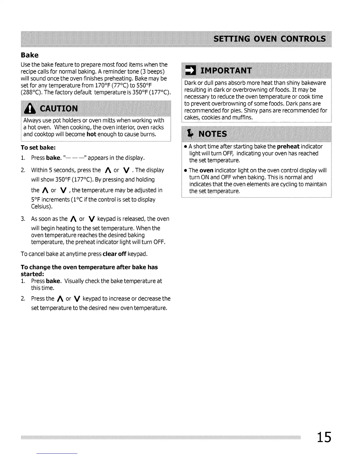 • A short time after starting bake the preheat indicator