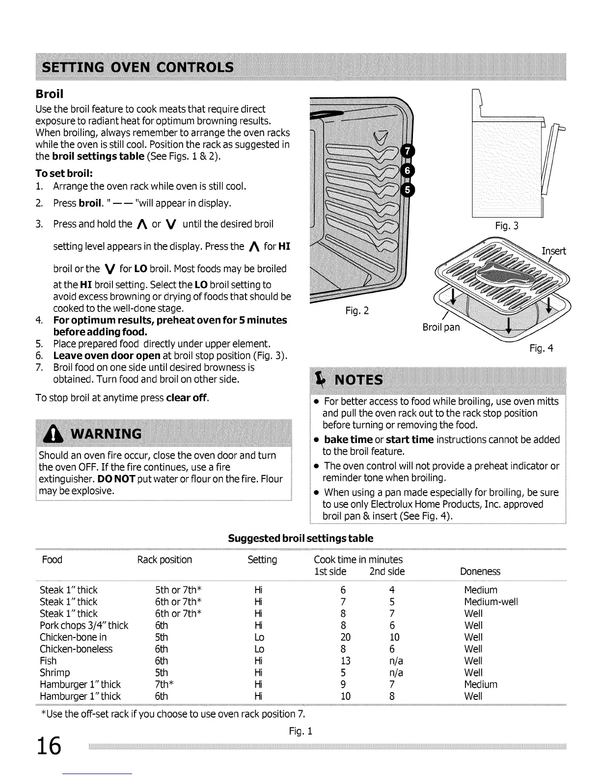 the broil settings table (See Figs. 1 & 2).