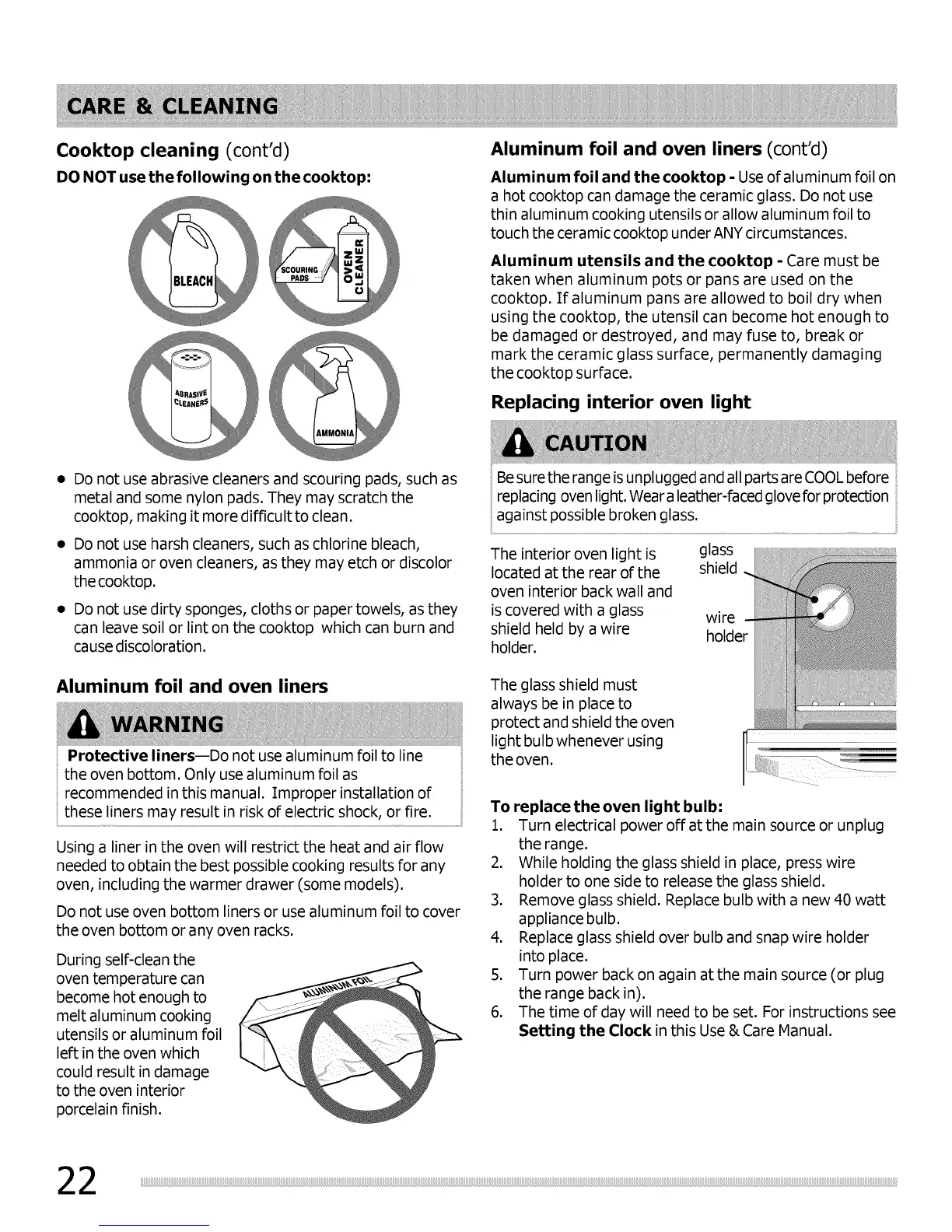 the oven bottom. Only usealuminum foil as