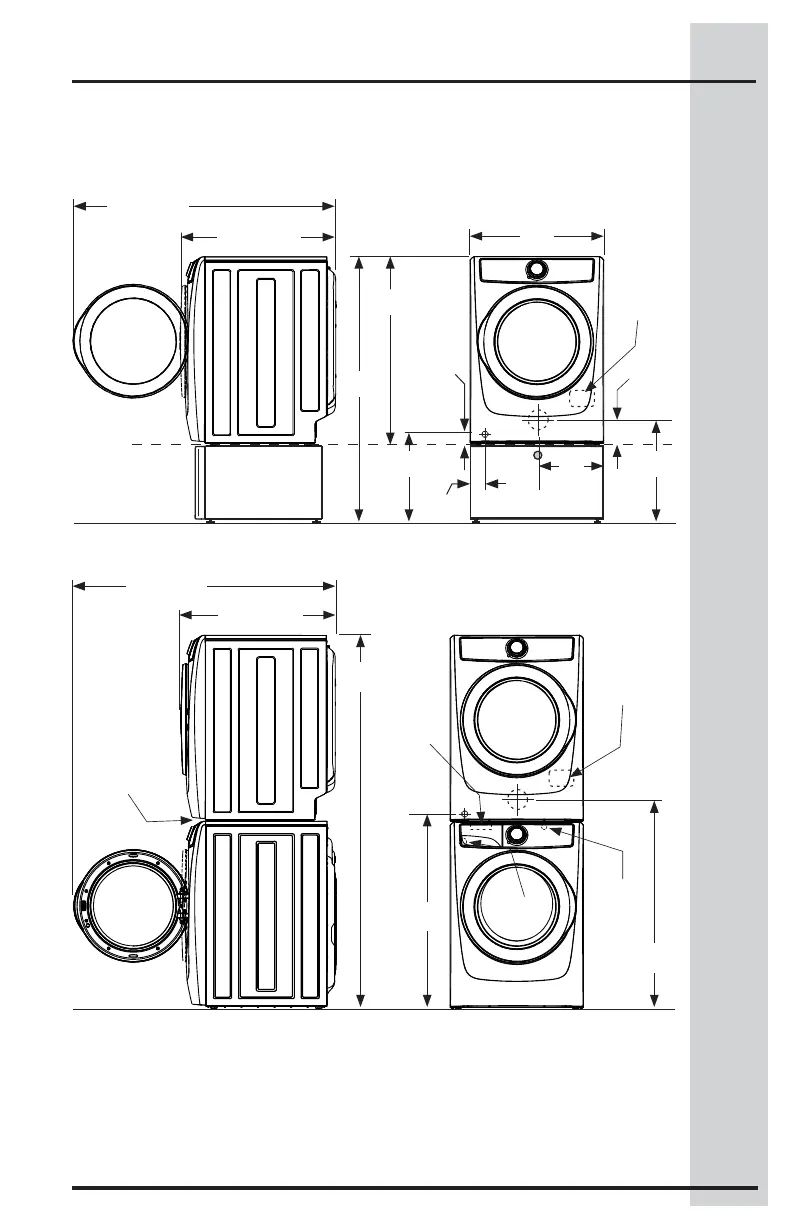 *Connection of water inlet hose on steam dryer adds 3/4 in. (2 cm) to installation depth.