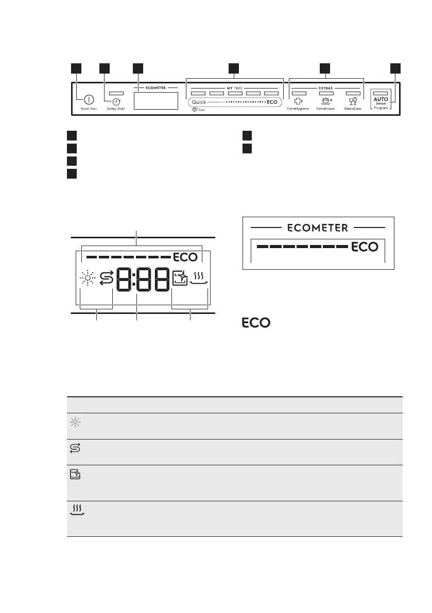 Rinse aid indicator. It is on when the rinse aid dispenser needs refill‐