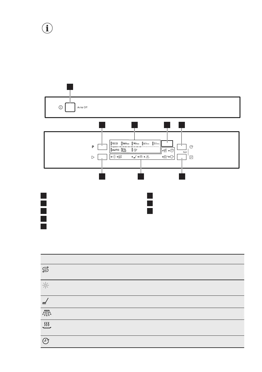 Rinse aid indicator. It is on when the rinse aid dispenser needs refill‐