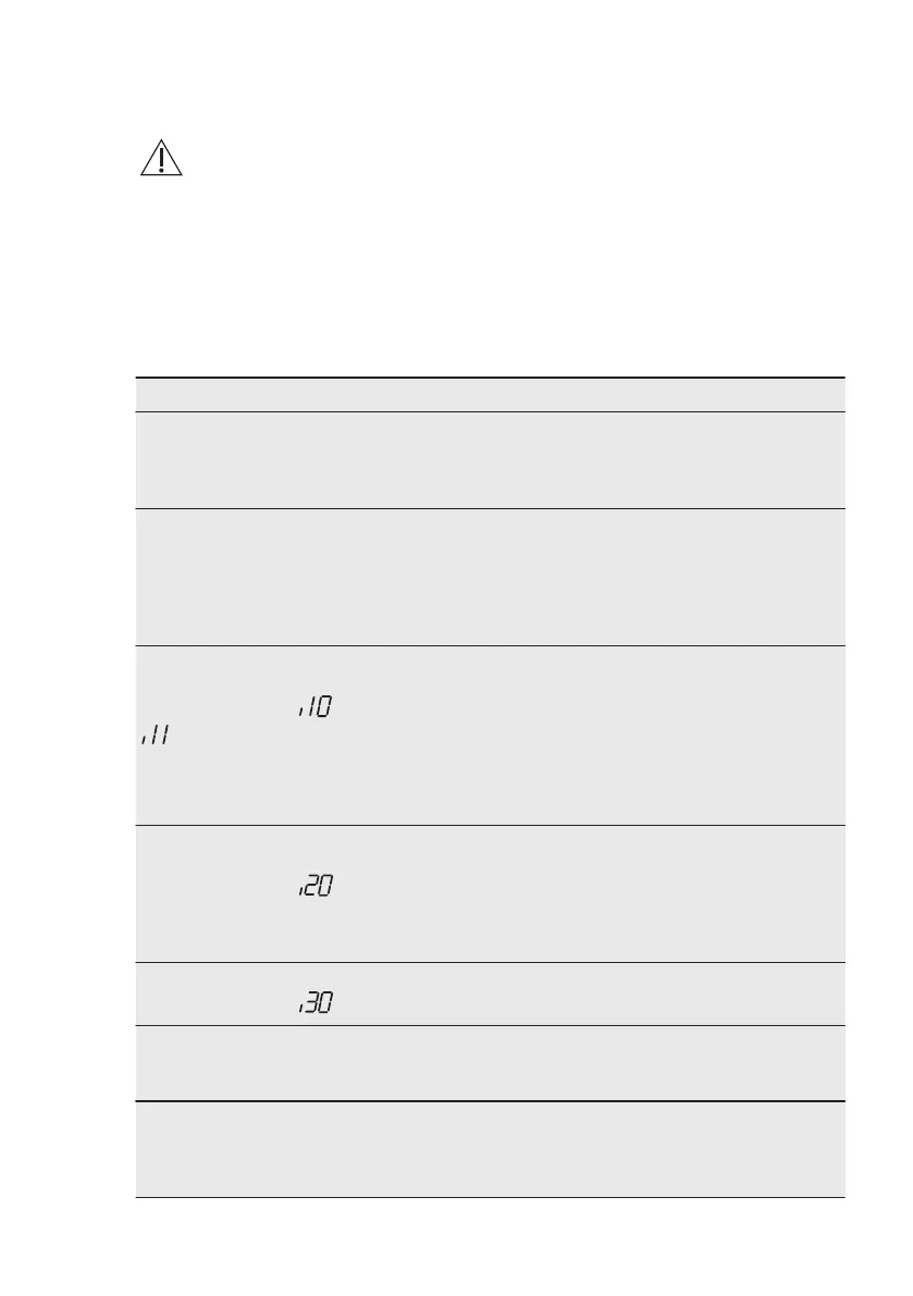 Problem and alarm code Possible cause and solution