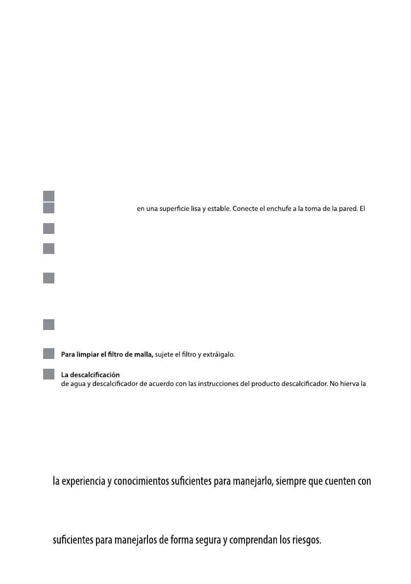 debe realizarse con regularidad, en función de la dureza del agua. Llene el hervidor
