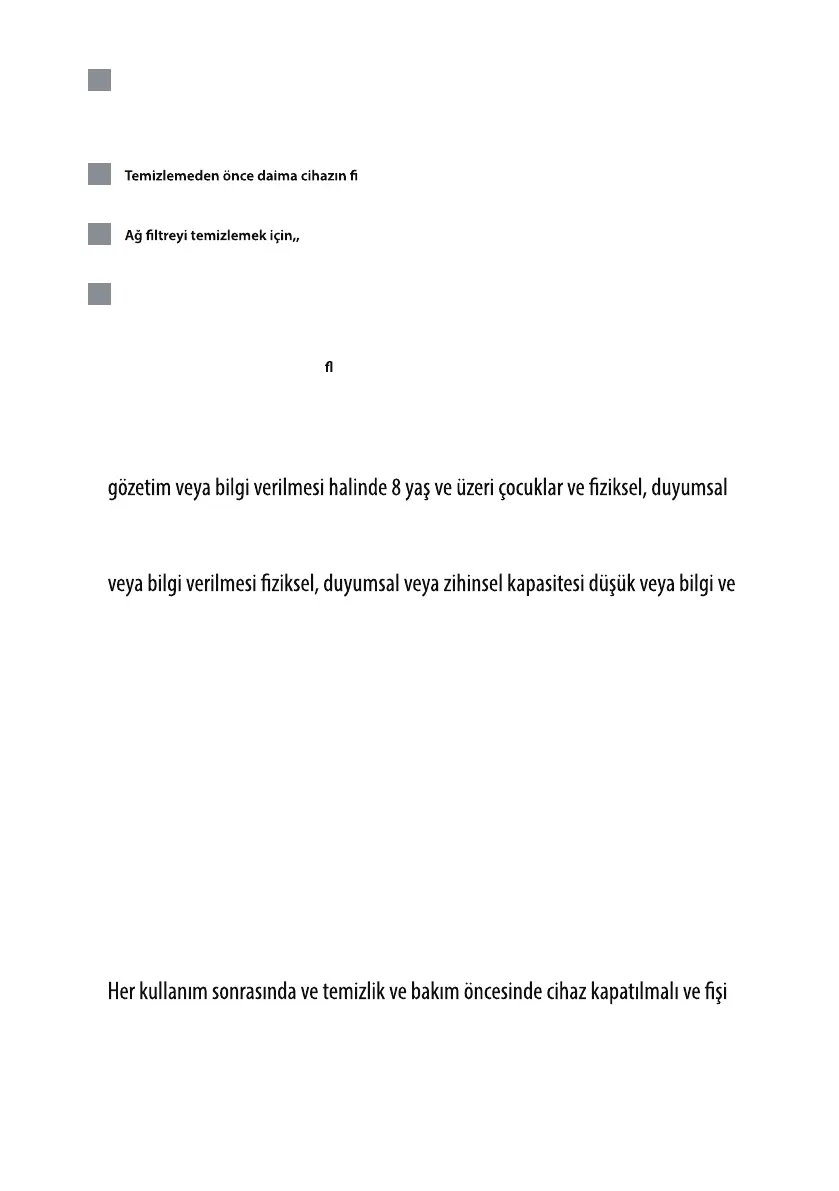 • Temizlik ve kullanıcı bakımı, 8 yaşından küçük çocuklar tarafından ve gözetim altında