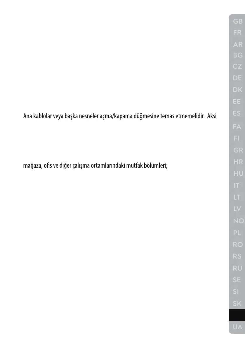 • Elektrik kablosu cihazın sıcak parçalarıyla temas etmemelidir.
