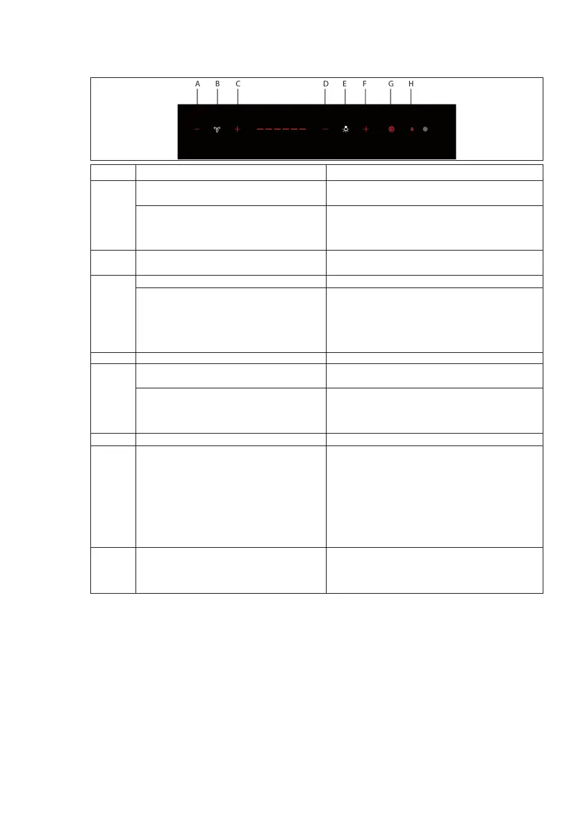 Lorsque la hotte est éteinte aucune fonction n’est afchée, seule la partie en clair du panneau des commandes est