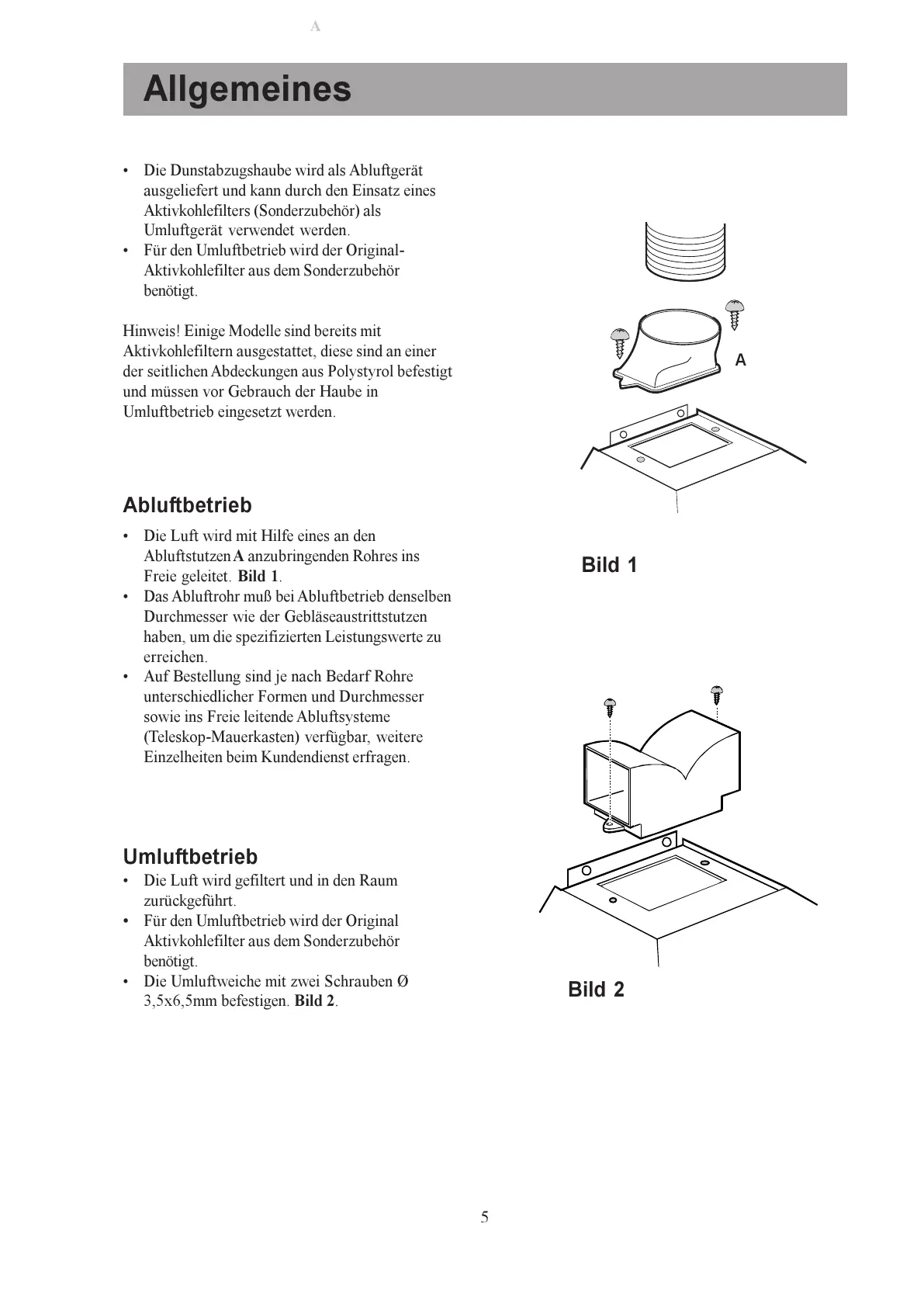 Das Abluftrohr muß bei Abluftbetrieb denselben