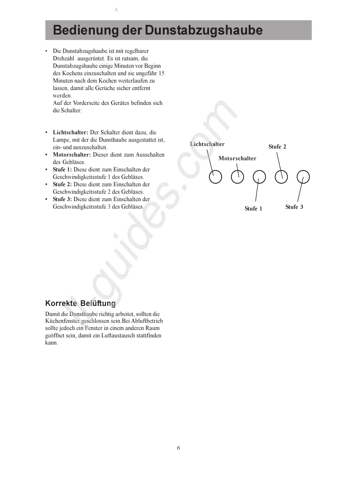 Küchenfenster geschlossen sein.Bei Abluftbetrieb