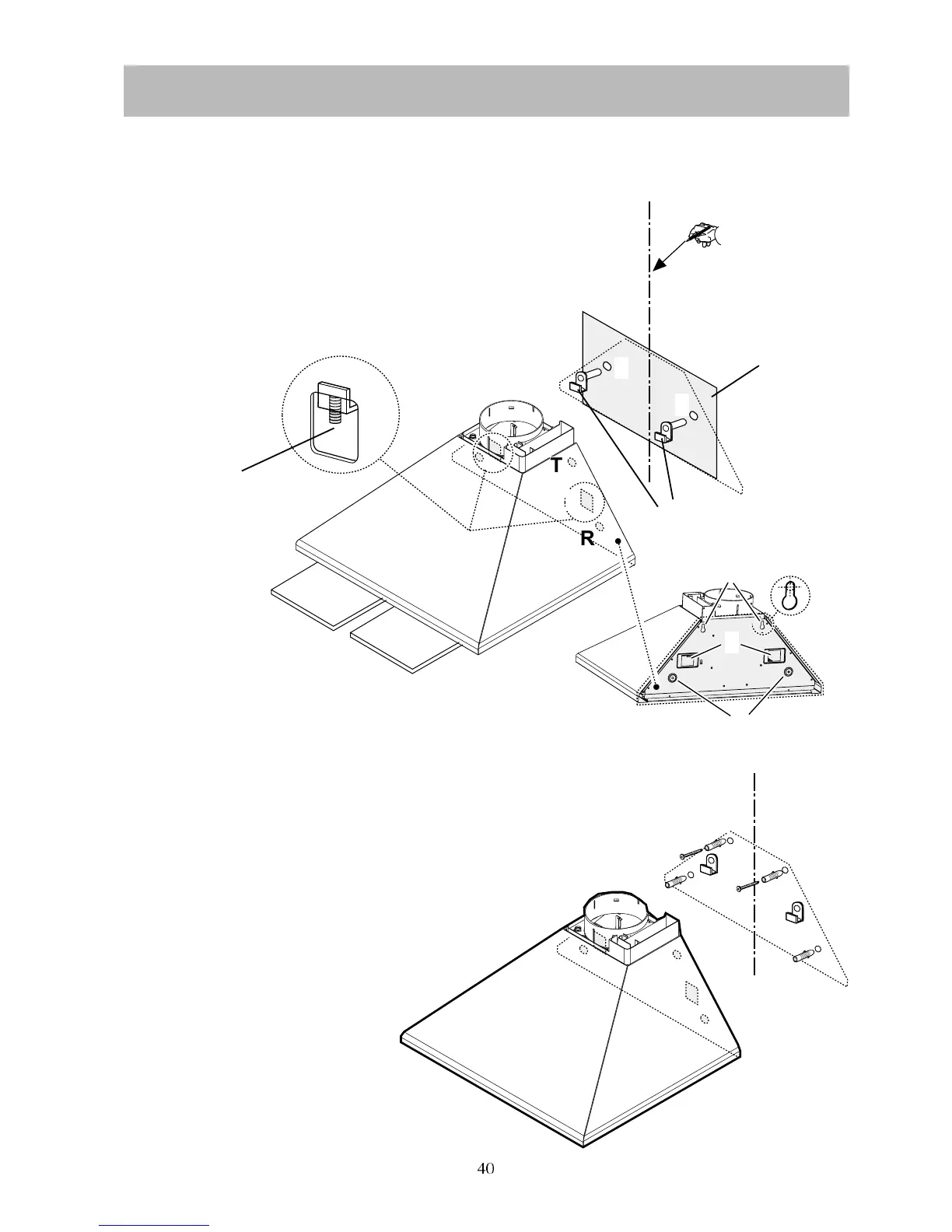 Remove the grease filters and mark for the 4 screws (T-R).