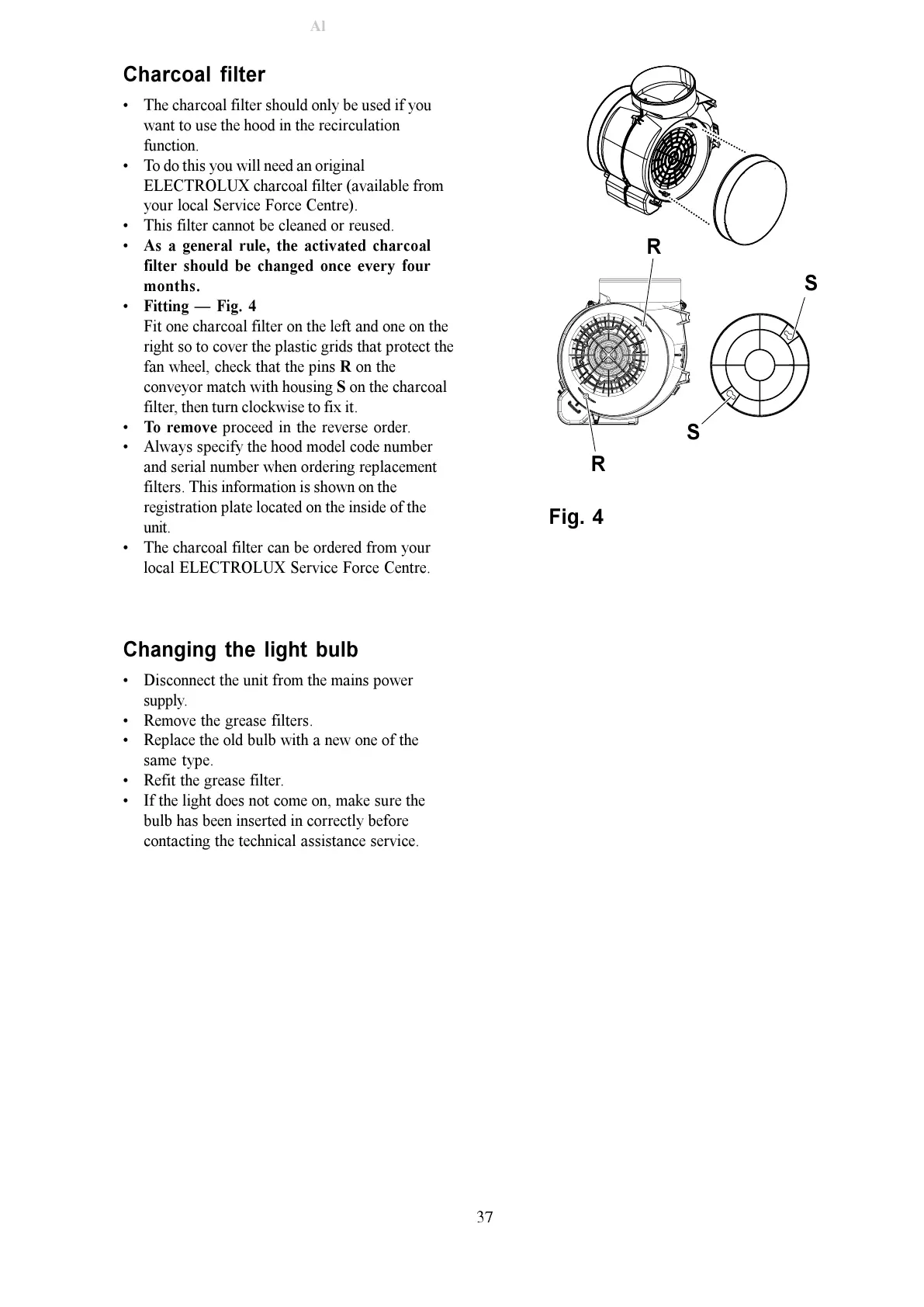 ELECTROLUX charcoal filter (available from