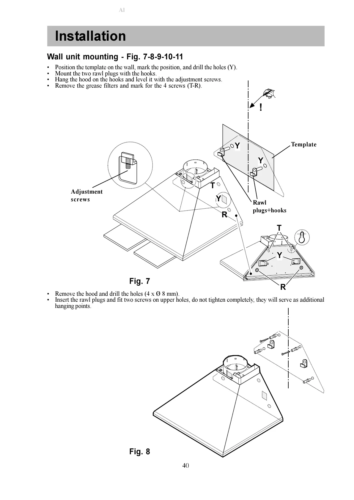 Position the template on the wall, mark the position, and drill the holes (Y).