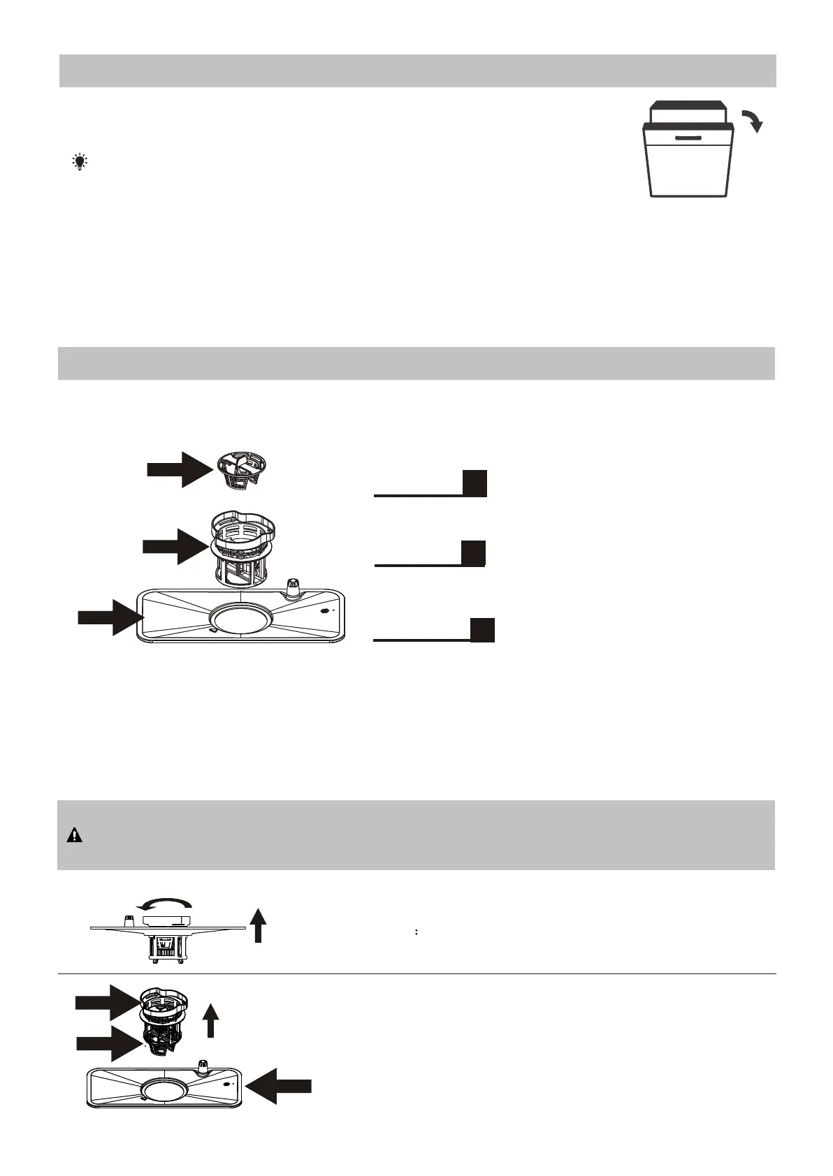 running water. To remove the filter assembly, pull on the cup handle in the upward direction.