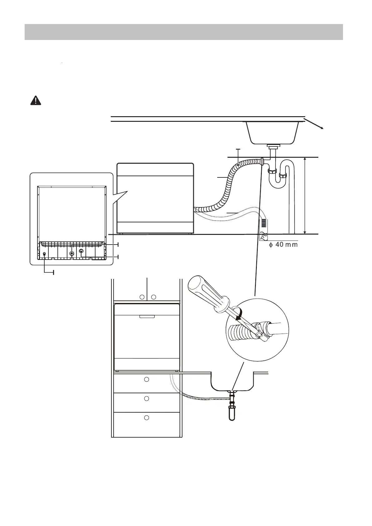 Insert the drain hose into a drain pipe with a minimum diameter of 40mm, or let