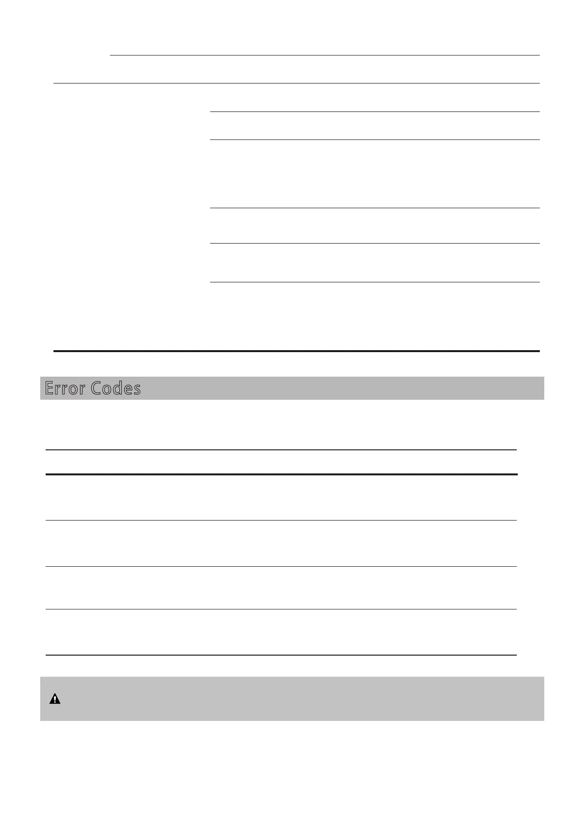 shows possible error codes and their causes.