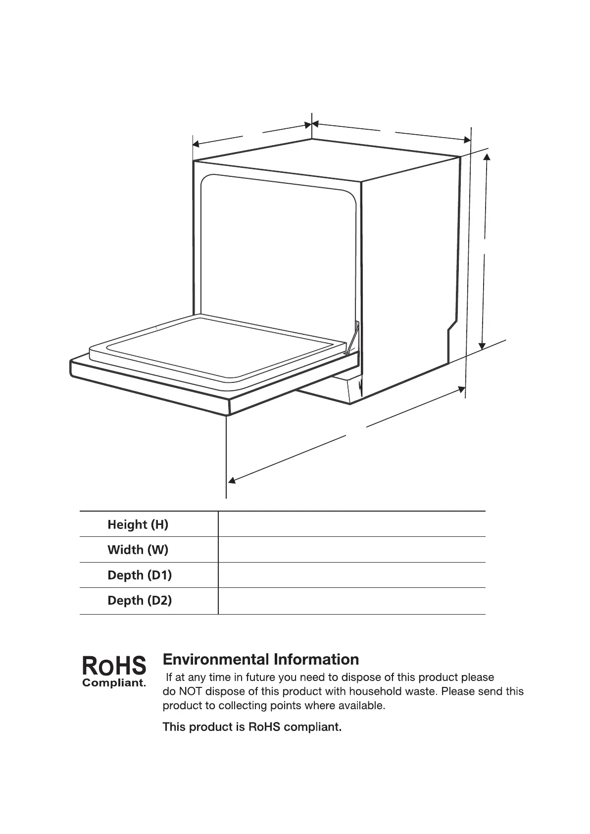 964mm (with the door opened 90°)