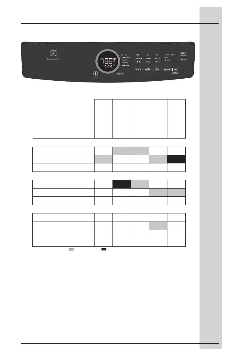 = Available selections. = Factory presets. = Non-modifiable presets.