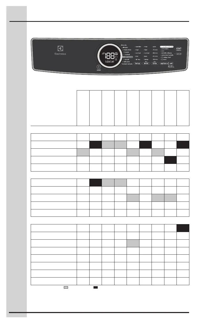 These temperature, dryness levels and options are available with the following cycles: