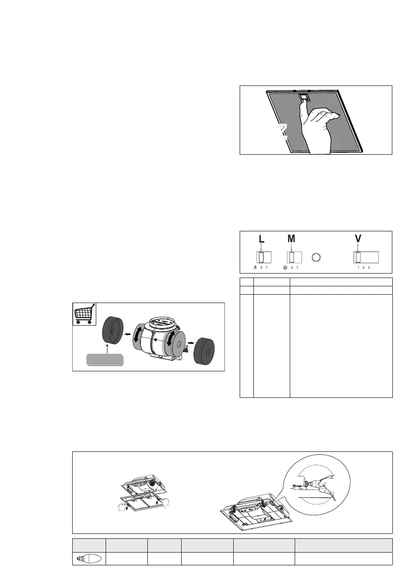 M Motor Tænder og slukker udsugningsmotoren.