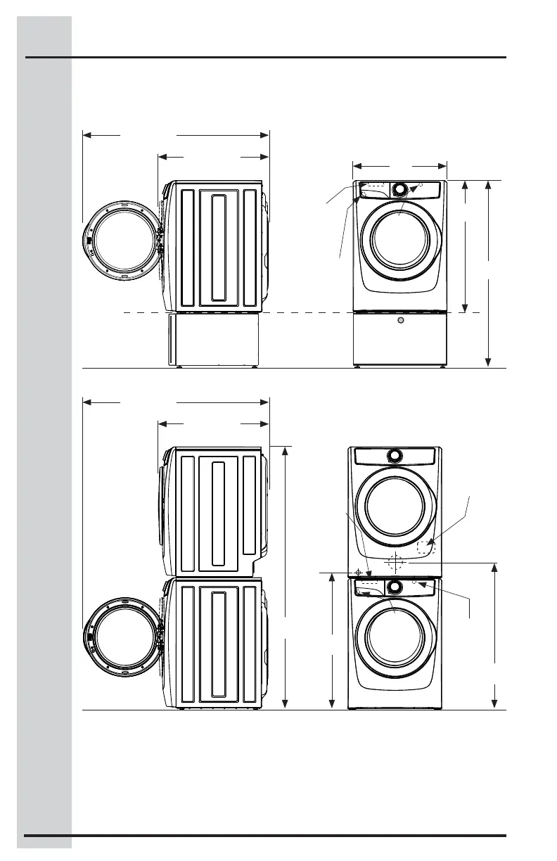 *La conexión de la manguera de entrada de agua en la secadora a vapor añade 3/4” (2 cm) a la profundidad de instalación.