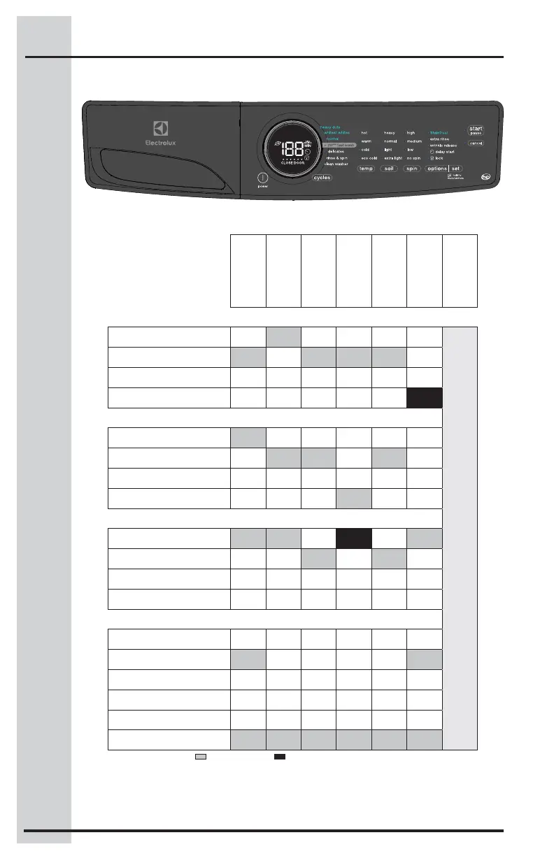 These temperature, spin speeds, soil levels and options are available with the following cycles: