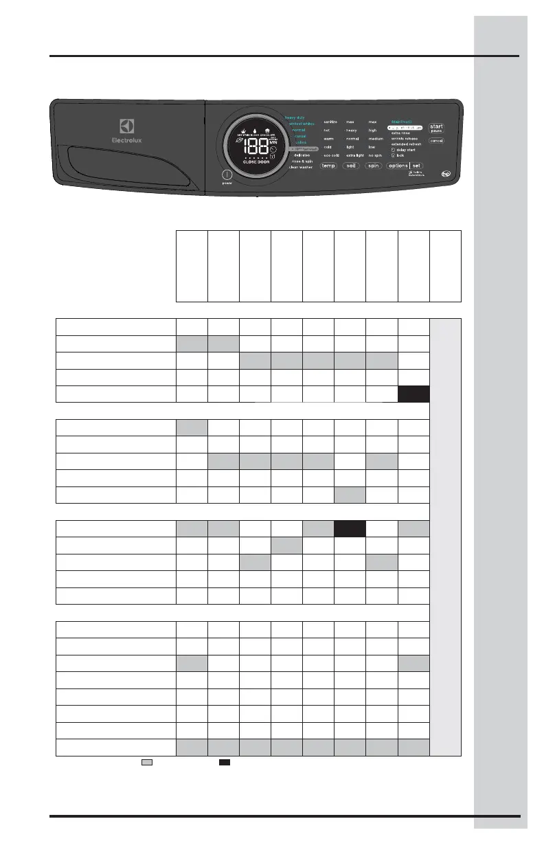 These temperature, spin speeds, soil levels and options are available with the following cycles: