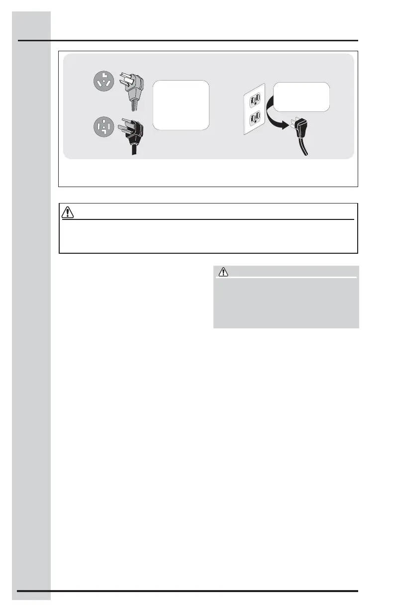 Avoid fi re hazard or electrical shock. Do not use an adaptor plug or extension cord or remove