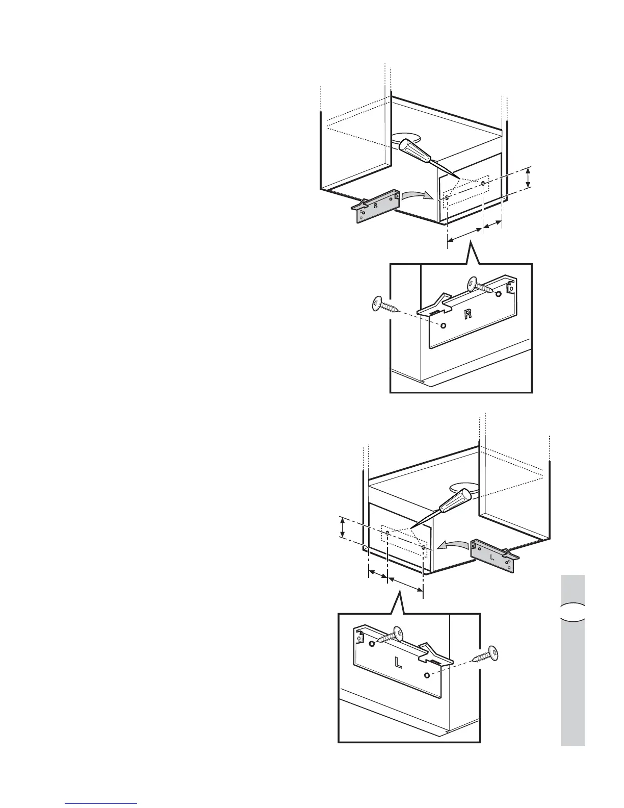 Fixing the brackets to the cabinetFixing the brackets to the cabinet