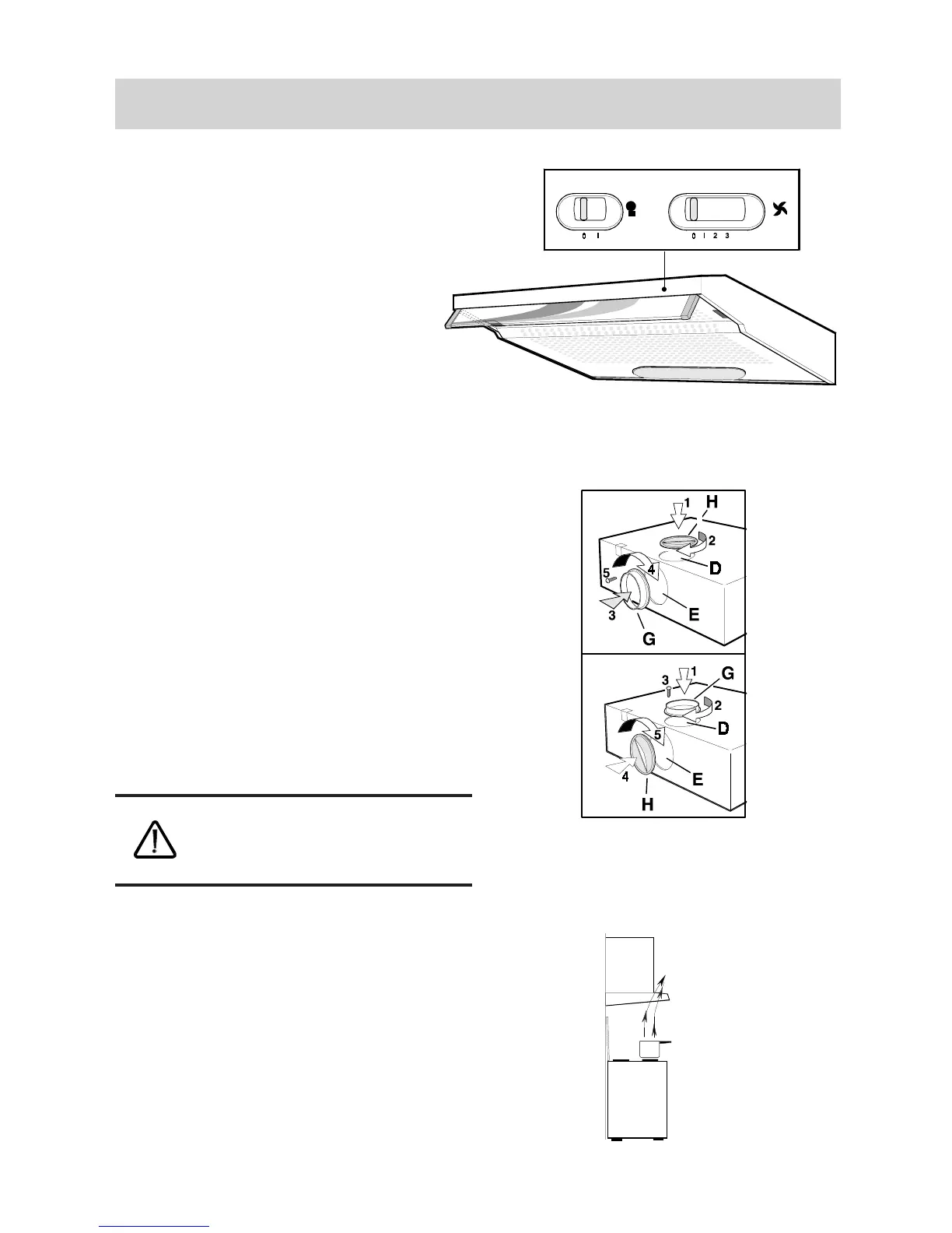The appliance has two exhaust outlets; D and E