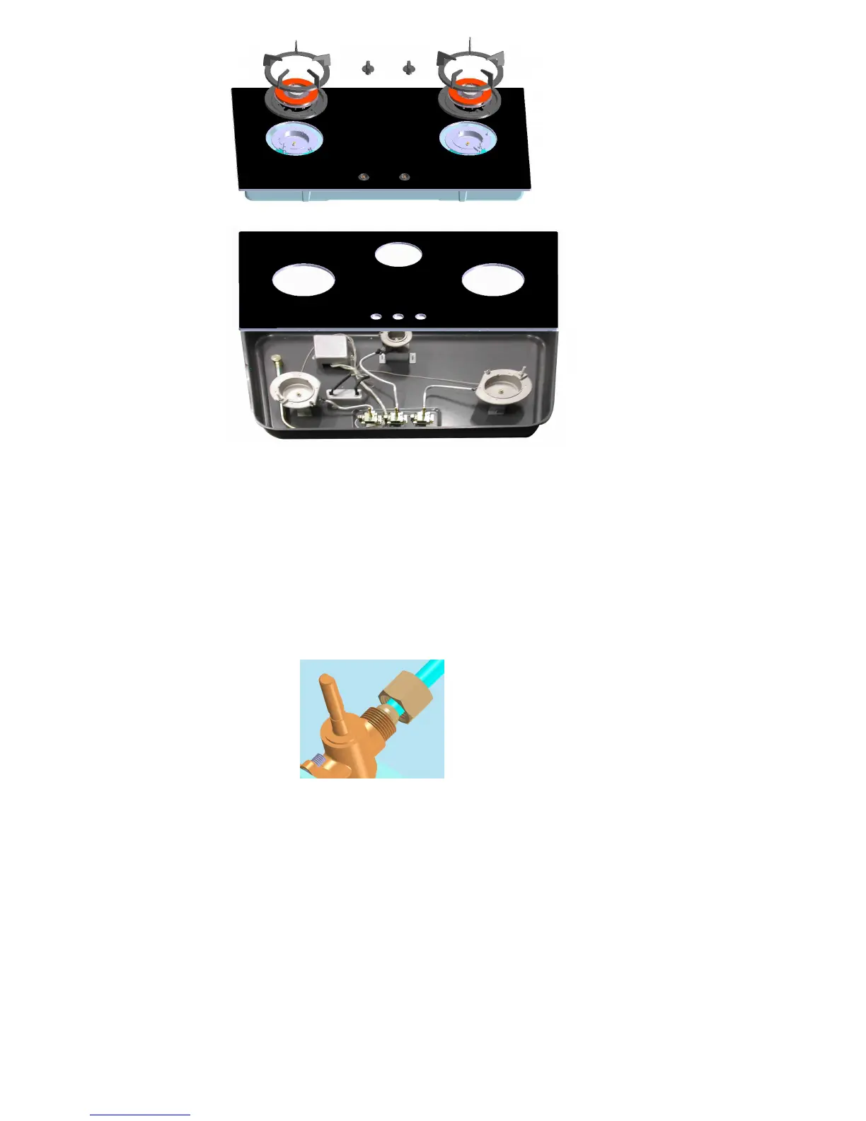 • Burner supply tubes. Note: When fitting the burner tubes to the valves and burner