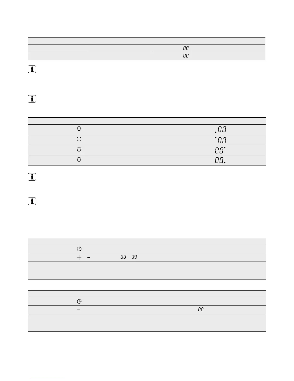 Countdown timer Cooking zones not in use