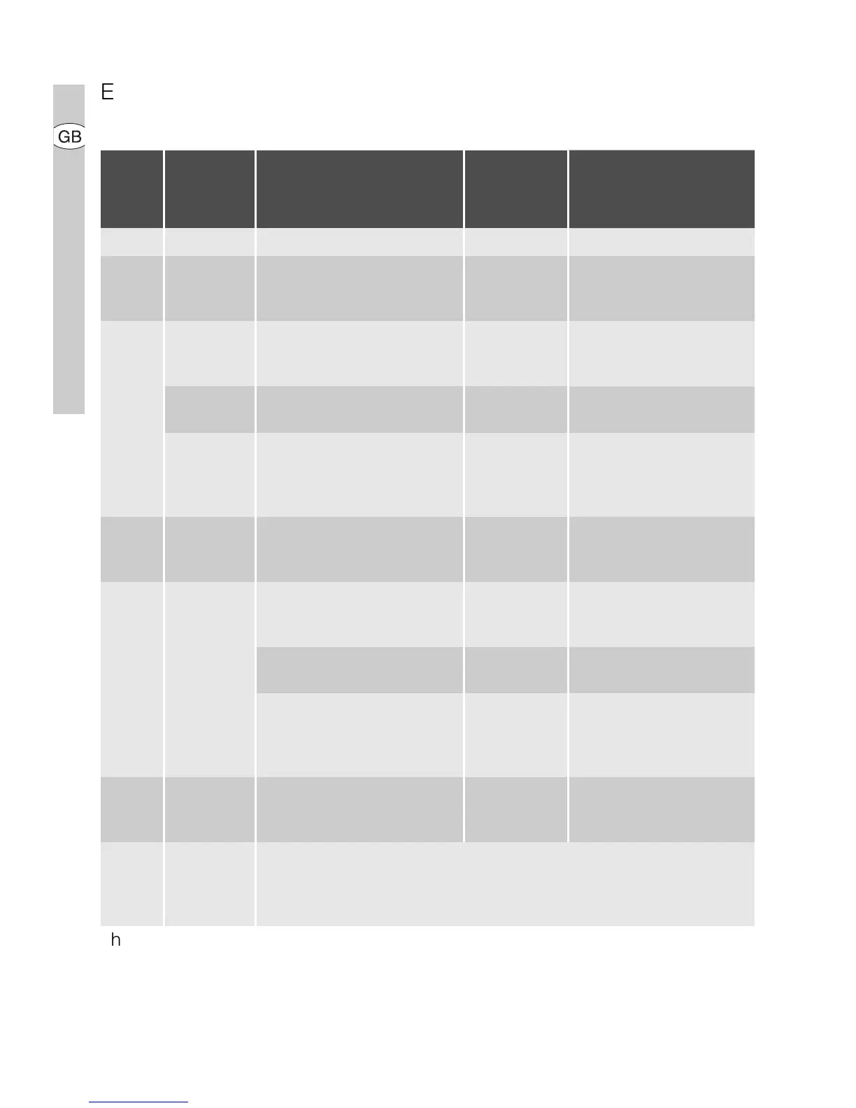 The information given in the following table is for guidance only.
