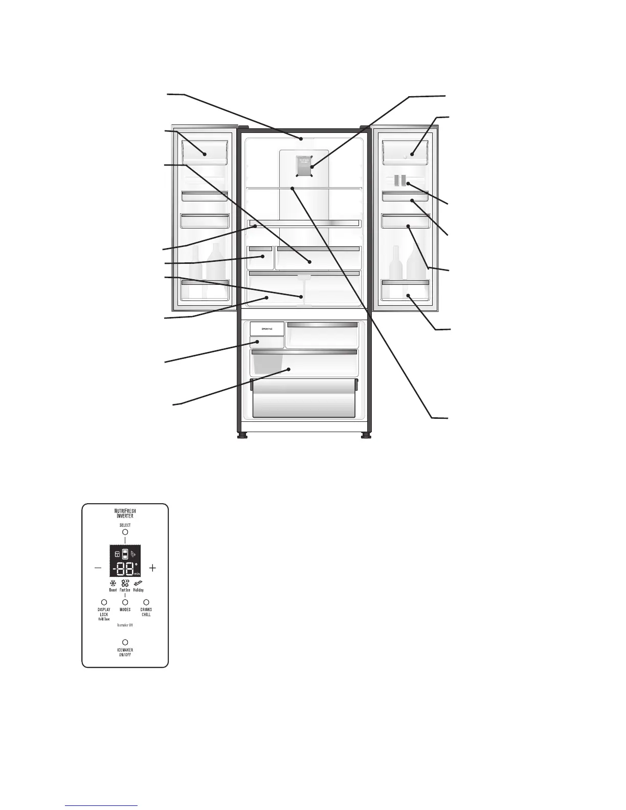 Electrolux EHE5220AA - Fitur-Fitur Lemari es; Fitur French Door Dengan es & Air Minum