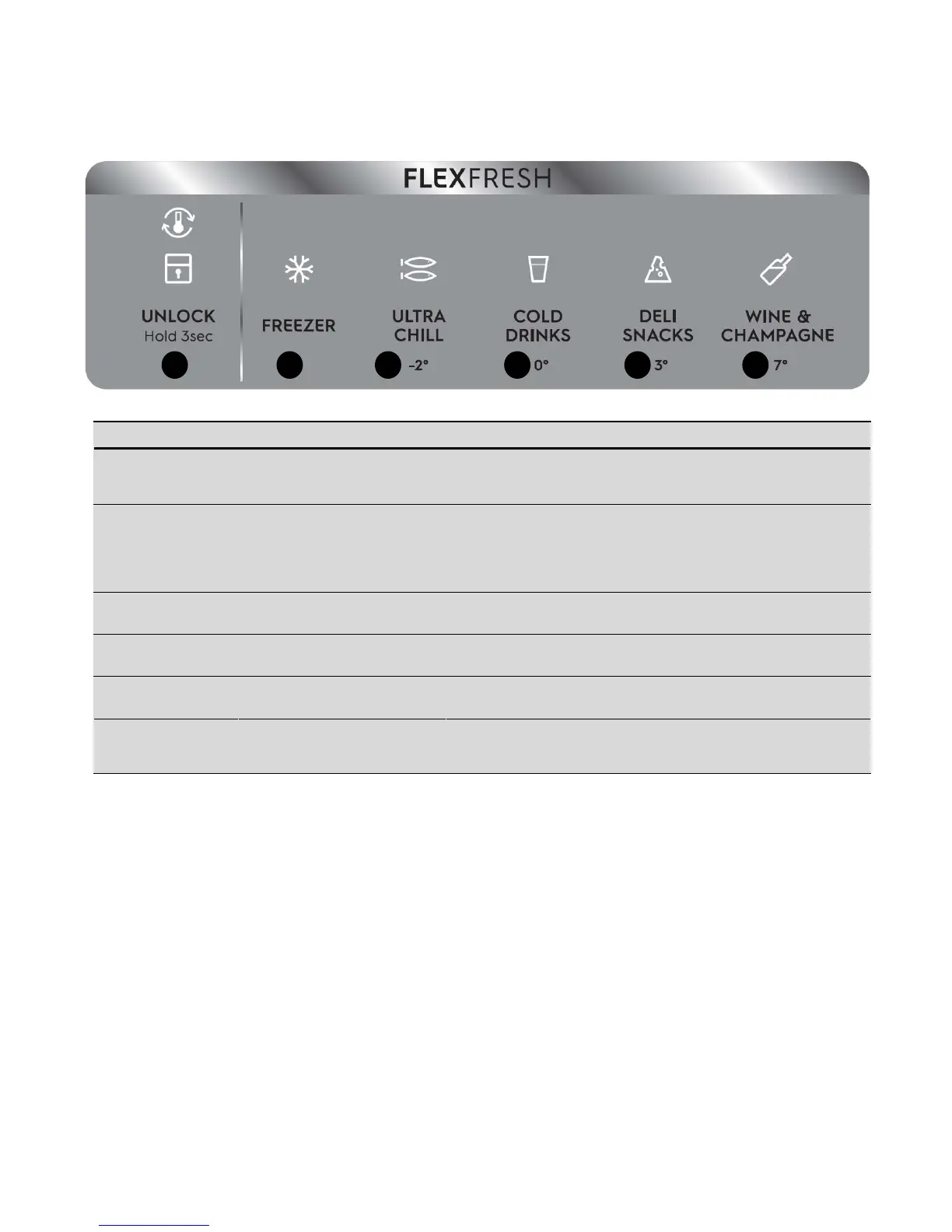 Choosing Wine & Champagne will set drawer temperature to 7°C.
