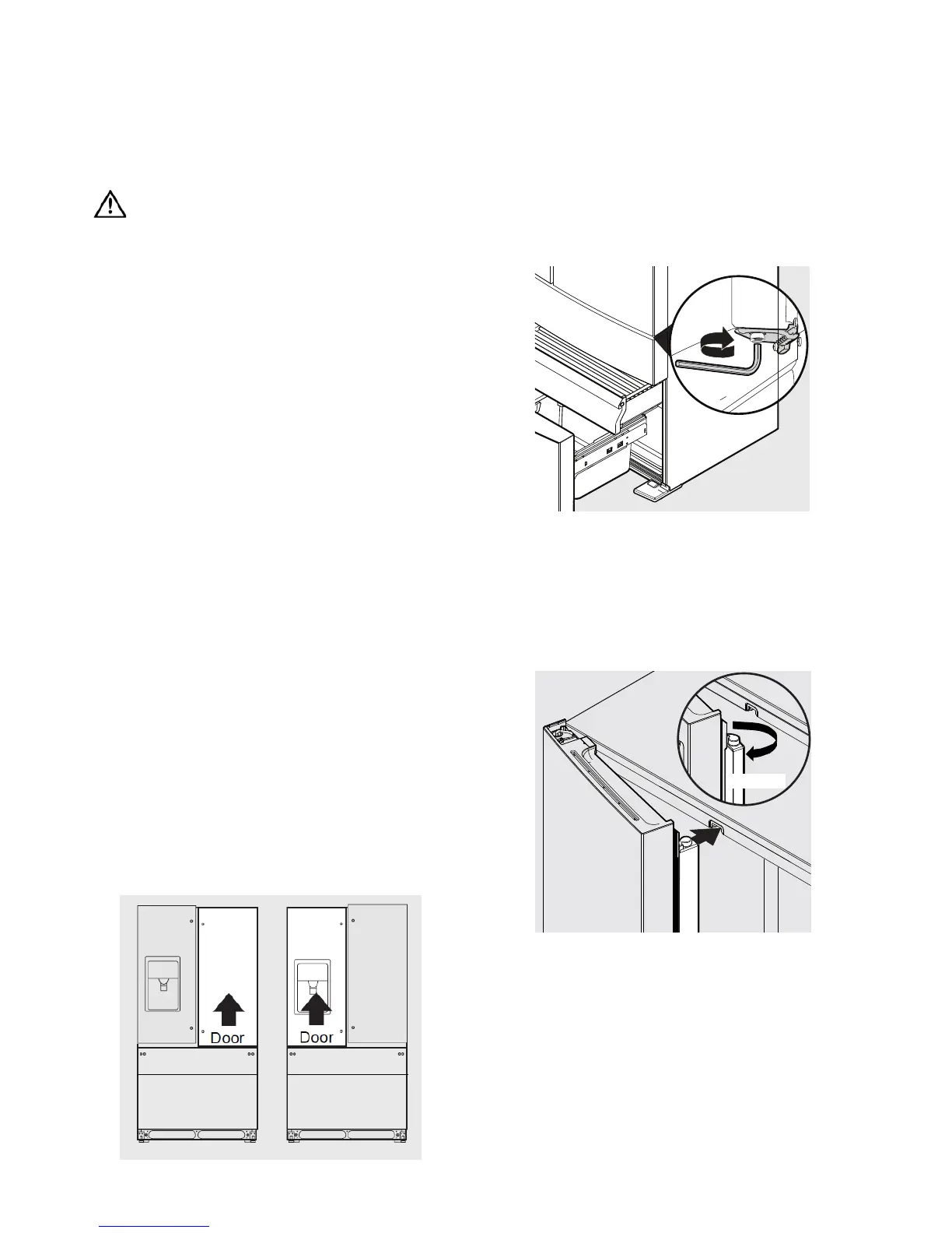 1. Open freezer drawer to make lower hinge visible.