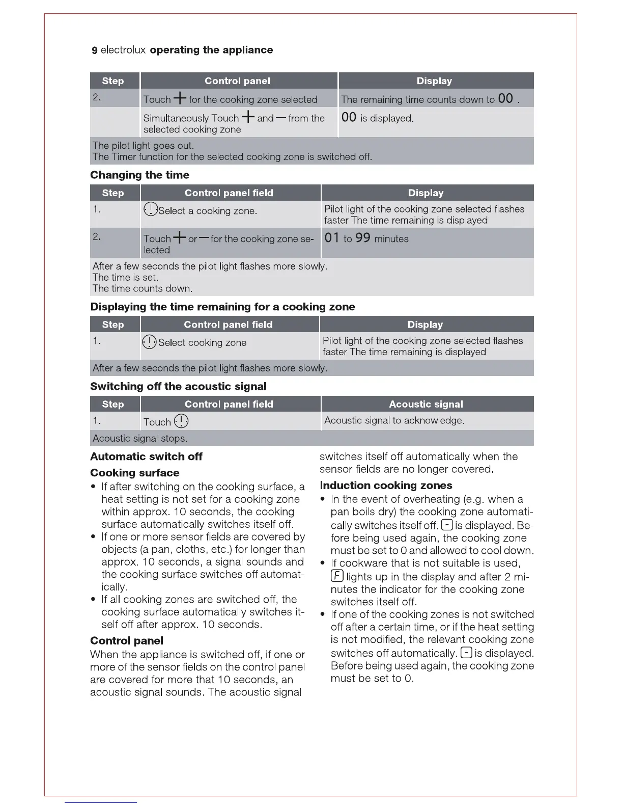 Electrolux EHED63CS - Timer and Automatic Switch Off; Automatic Switch Off Features