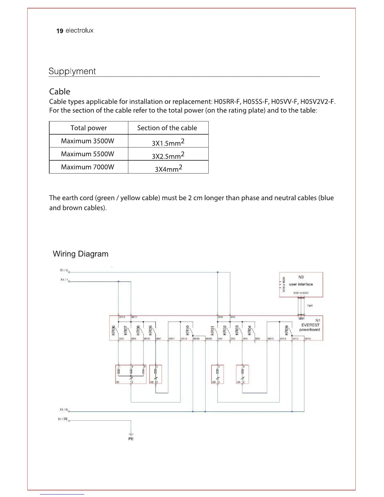 Electrolux EHED63CS - Supplyment and Wiring; Cable Specifications for Installation; Appliance Wiring Diagram