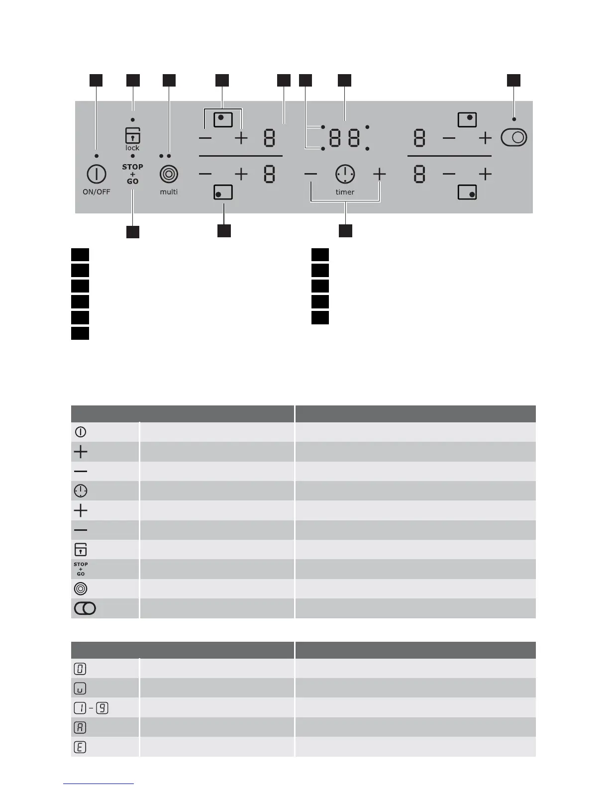 6 Cooking zone indicators Timer function