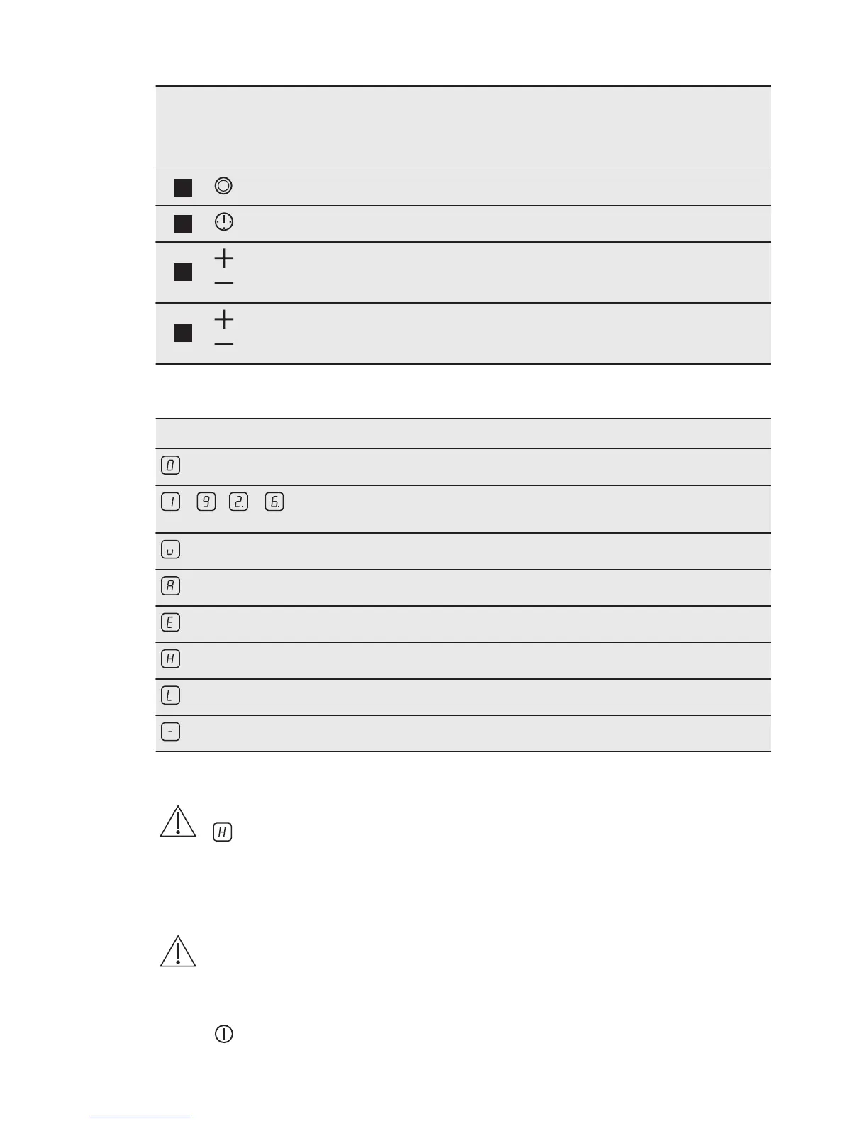 Taškas reiškia kaitinimo lygio pakeitimą puse diapazono.