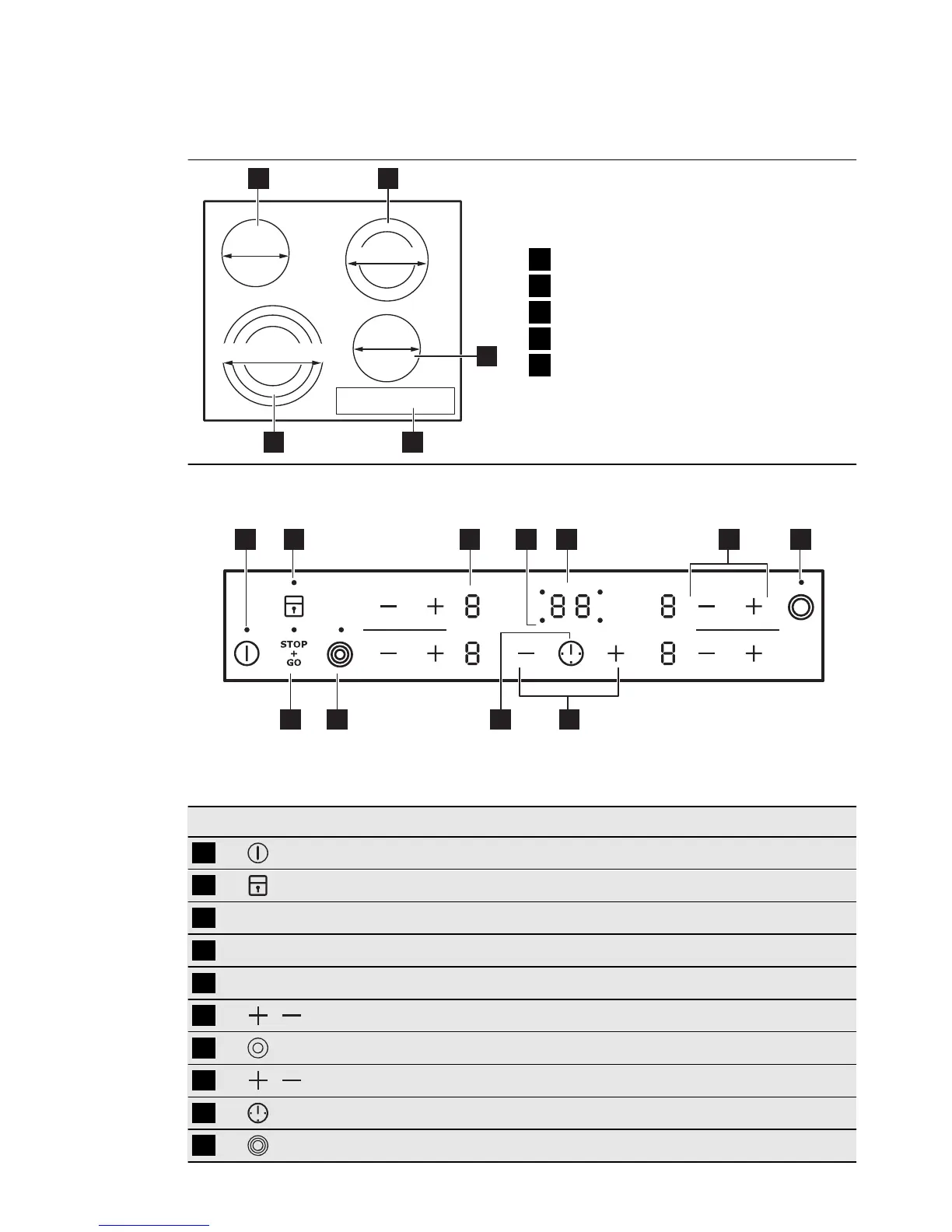 쿠킹존의 타이머 표시등 시간을 설정하는 존(구역) 표시.