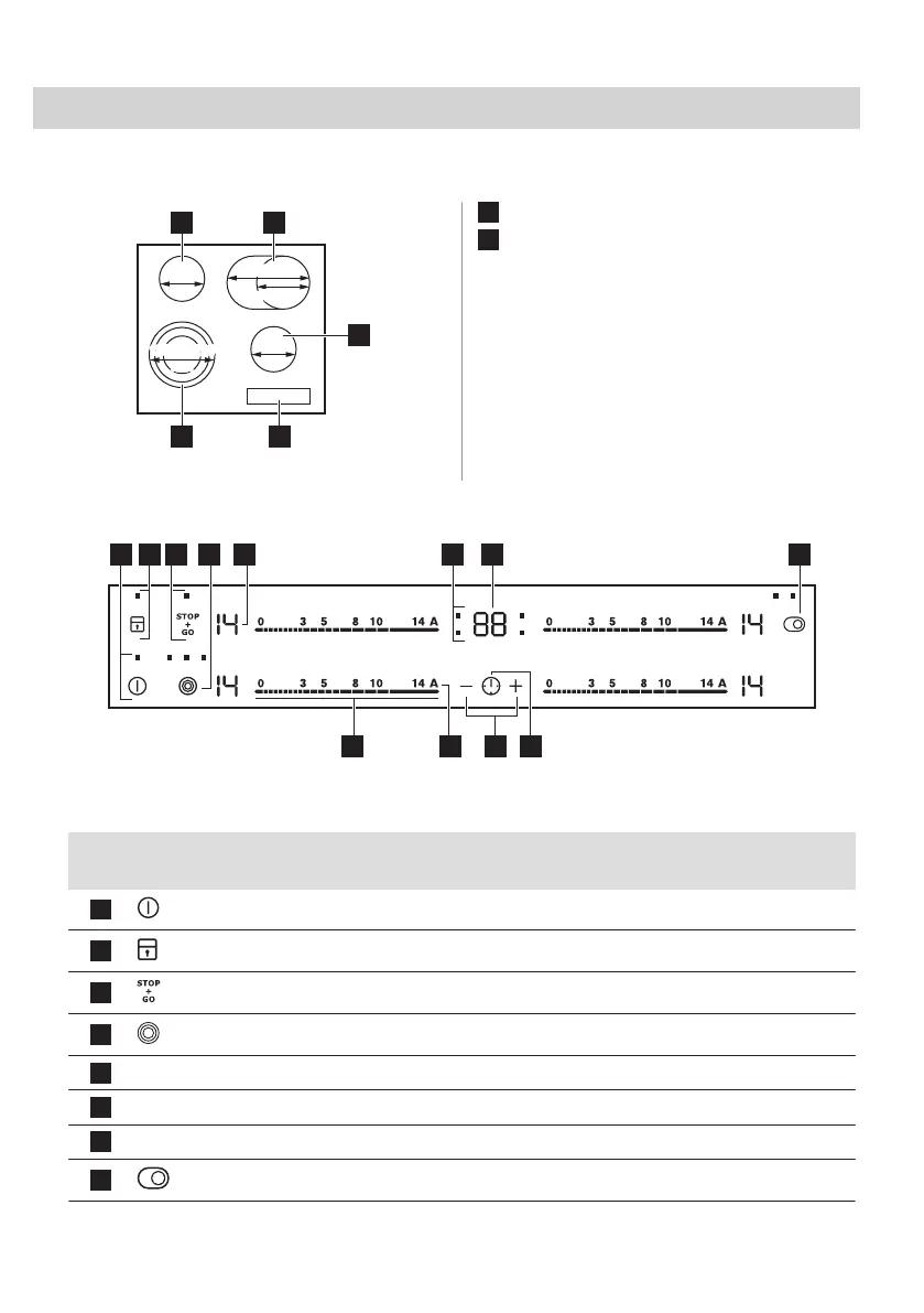 - Timer indicators of cooking zones To show for which zone you set the time.
