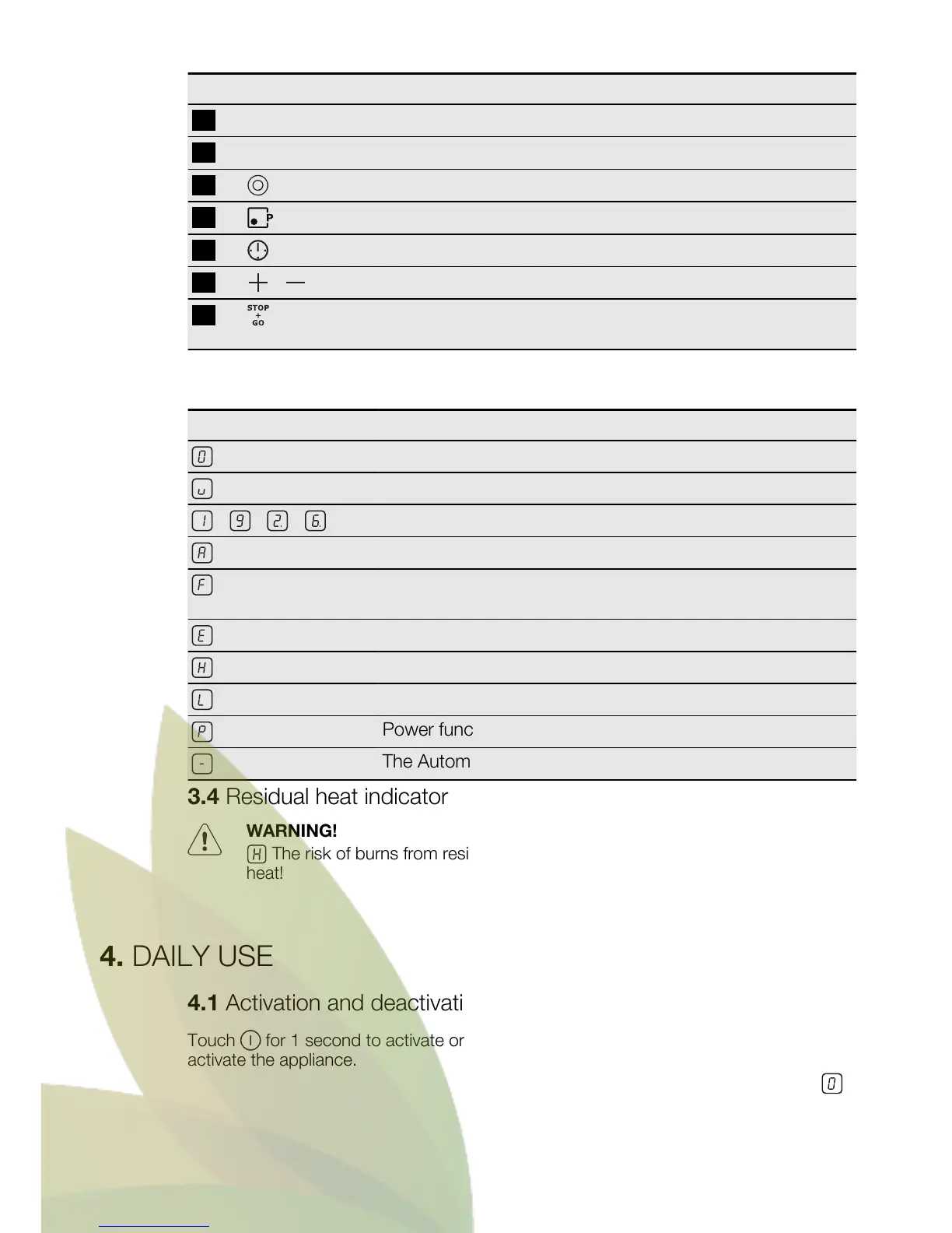 3.4 Residual heat indicator