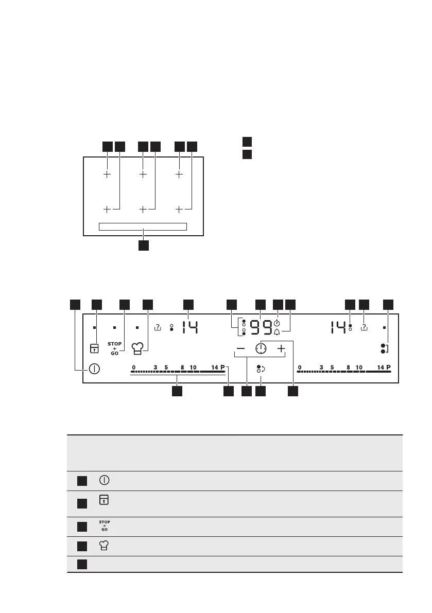 - Kochstufenanzeige Zeigt die Kochstufe an.
