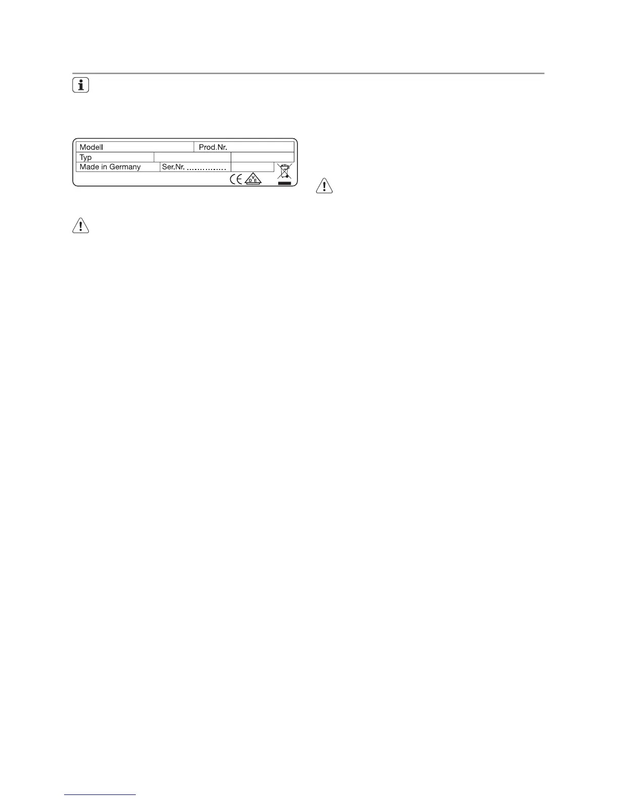 Warning! Risk of injury from electrical