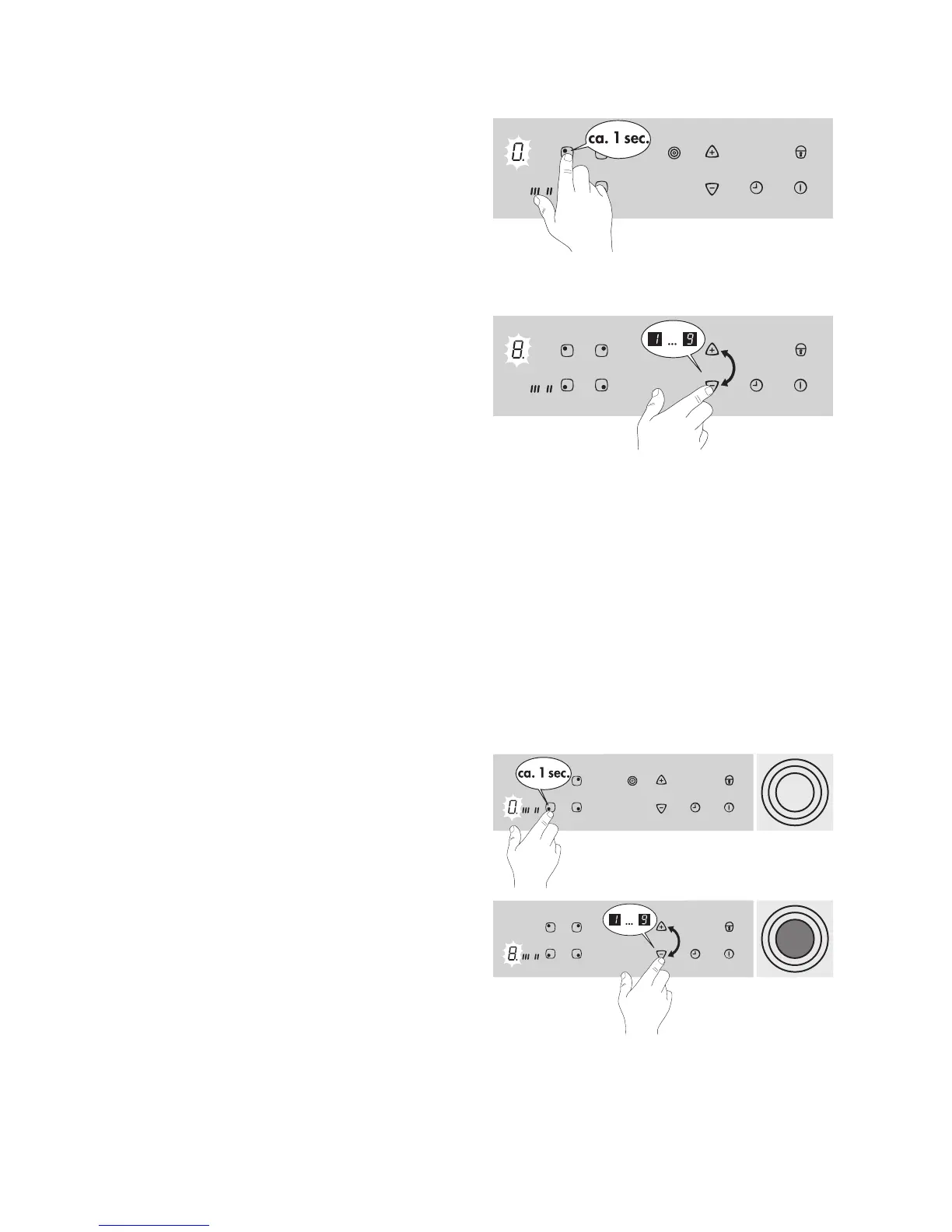 To select the required cooking zone touch the corre-