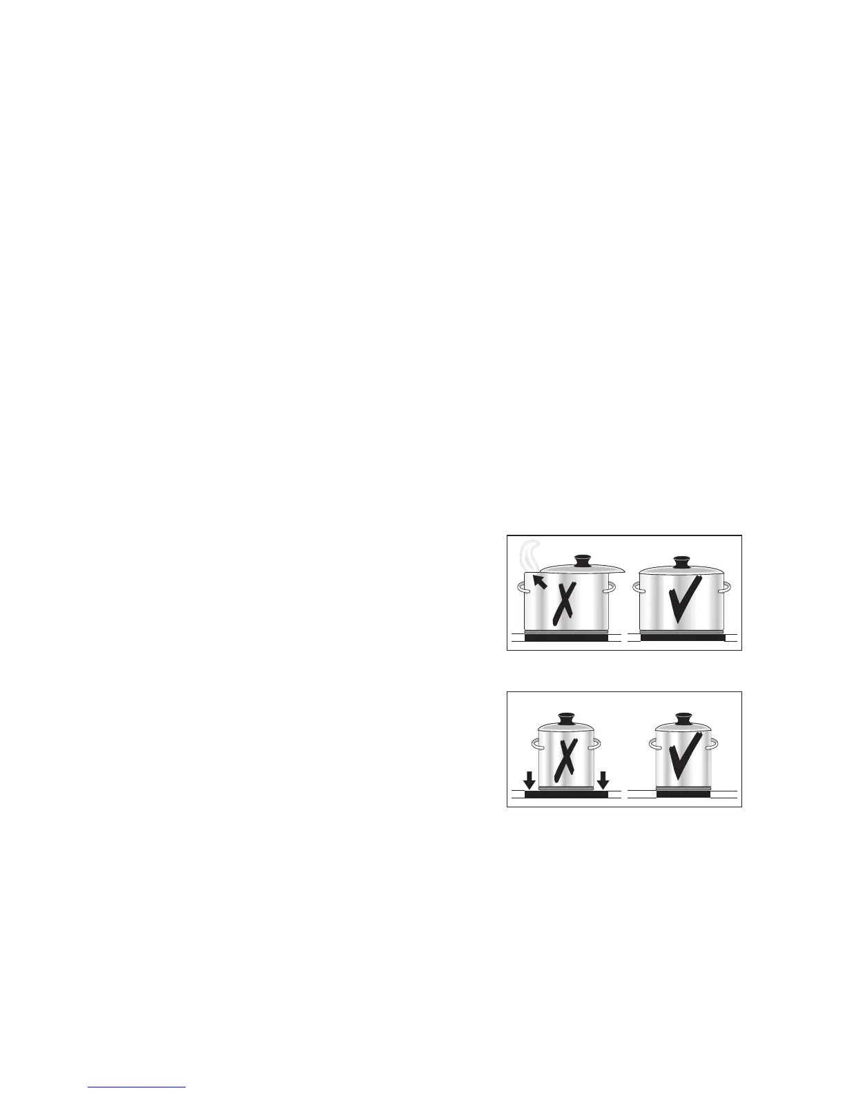 2 Bottom of pans and cooking zones should be