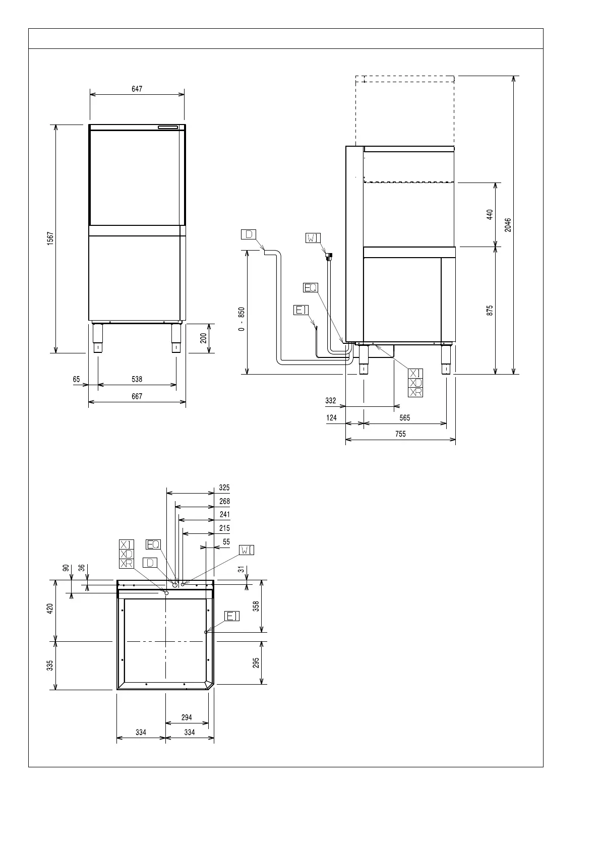 Installation diagram - automatic hood type with drain pump and without energy saving device (ESD)