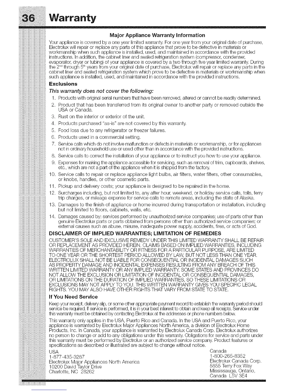 Products, Inc. In Canada, your appliance is warranted by Electrolux Canada Corp. Electrolux authorizes