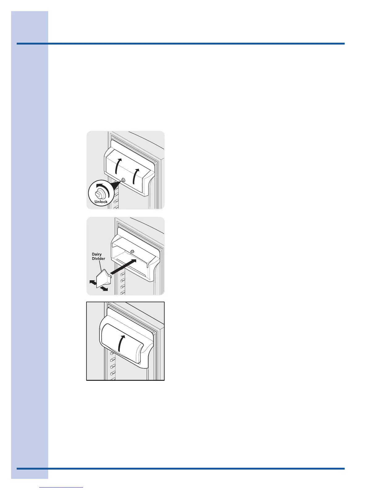 cheese, spreads, or butter. The dairy compartment,